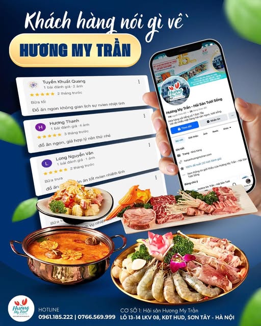 Với quy trình bảo quản đạt chuẩn và phong cách phục vụ tận tâm, Hương My Trần sẽ mang đến trải nghiệm ẩm thực hải sản an toàn, tươi mới và tiện lợi cho gia đình, tiệc liên hoan hay đặt mang về.